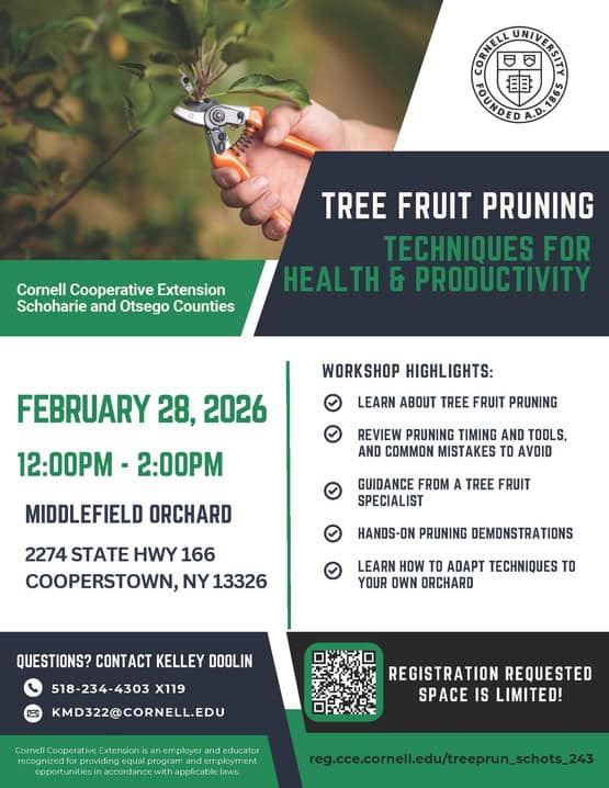 Middlefield Orchards 2274 State Highway 166, Middlefield, NY, United StatesJoin us for an interactive workshop focused on practical pruning techniques to improve the health, structure, and productivity of your tree fruit. Michael Basedow, tree fruit specialist, will guide participants…